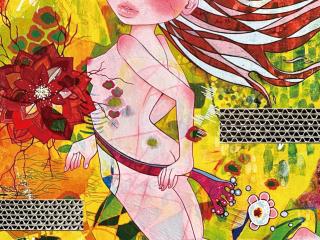 作品は主にシルクスクリーンを用いた平面アート。支持体は和紙・木材・布。表現方法もアナログからデジタルまで様々。